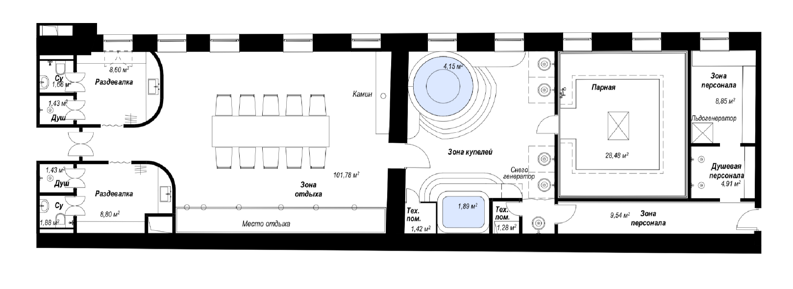 Интеграция текучей воды в интерьер. Отсыл к Иртышу, который на протяжении столетий, почти смыл весь город на утёсе.