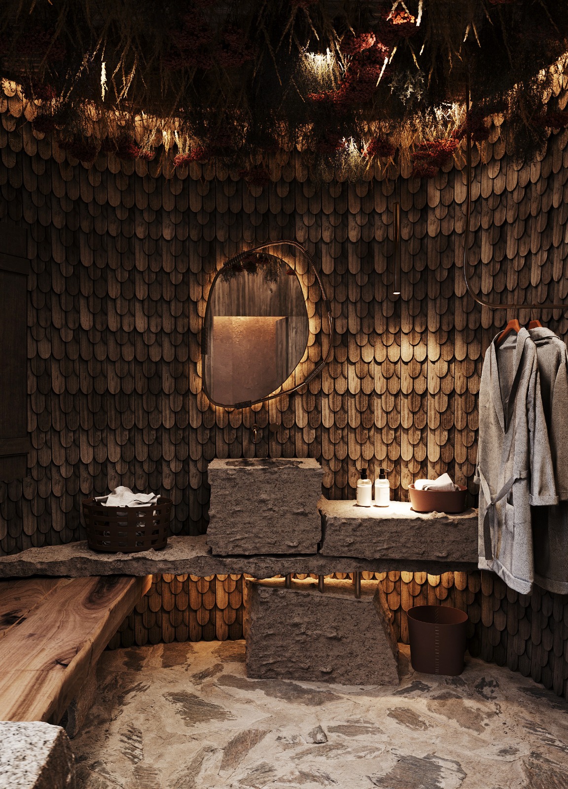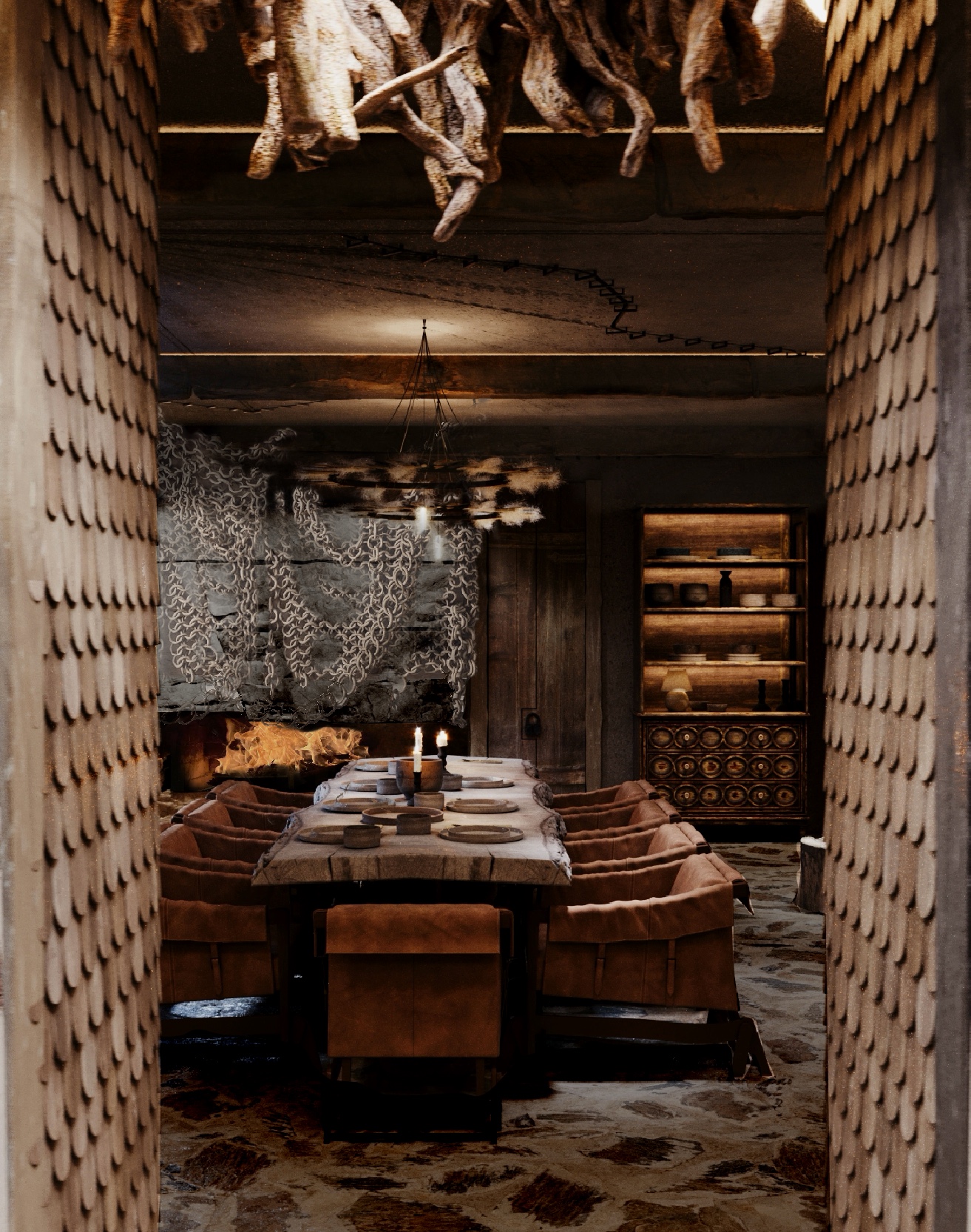 В интерьер интегрированы монеты Ивана Грозного, которые были обнаружены в Искере и назывались "чешуйки".