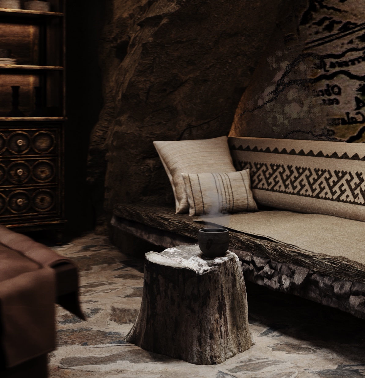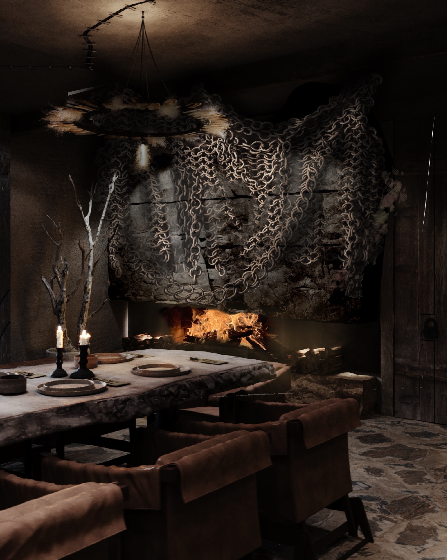 Также в интерьере присутствует отсыл на Сибирское ханство и их основные символы и атрибуты.