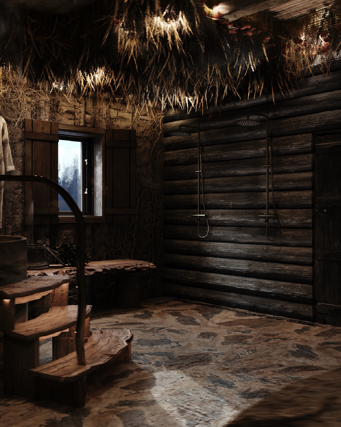 На потолке свисающие корни деревьев отсылают нас к подземным лазам и пещерам, по которым жители Искера ушли к Иртышу, спасаясь от казачьего войска.