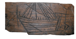 Доски с изображением судов, обнаруженные в ходе раскопок Мангазейского городища.
