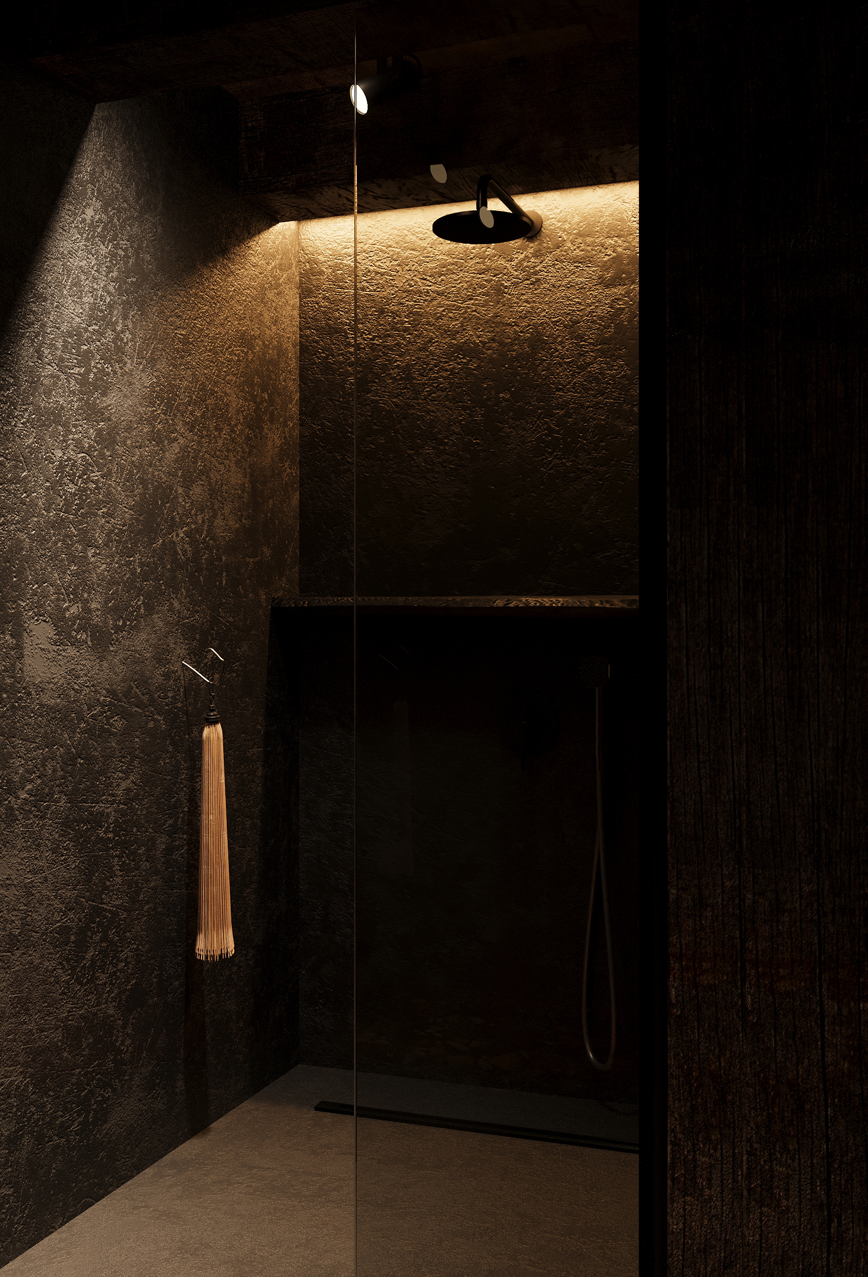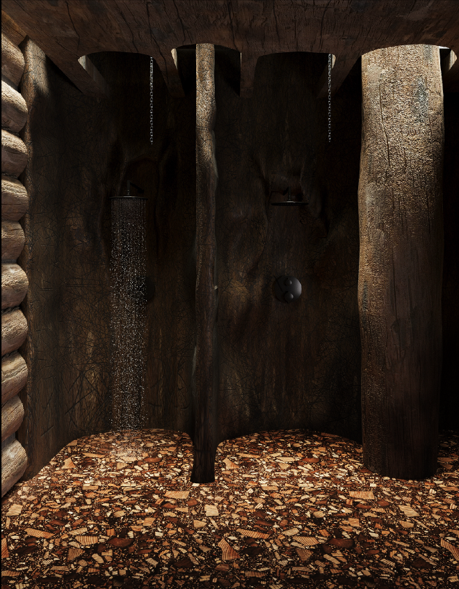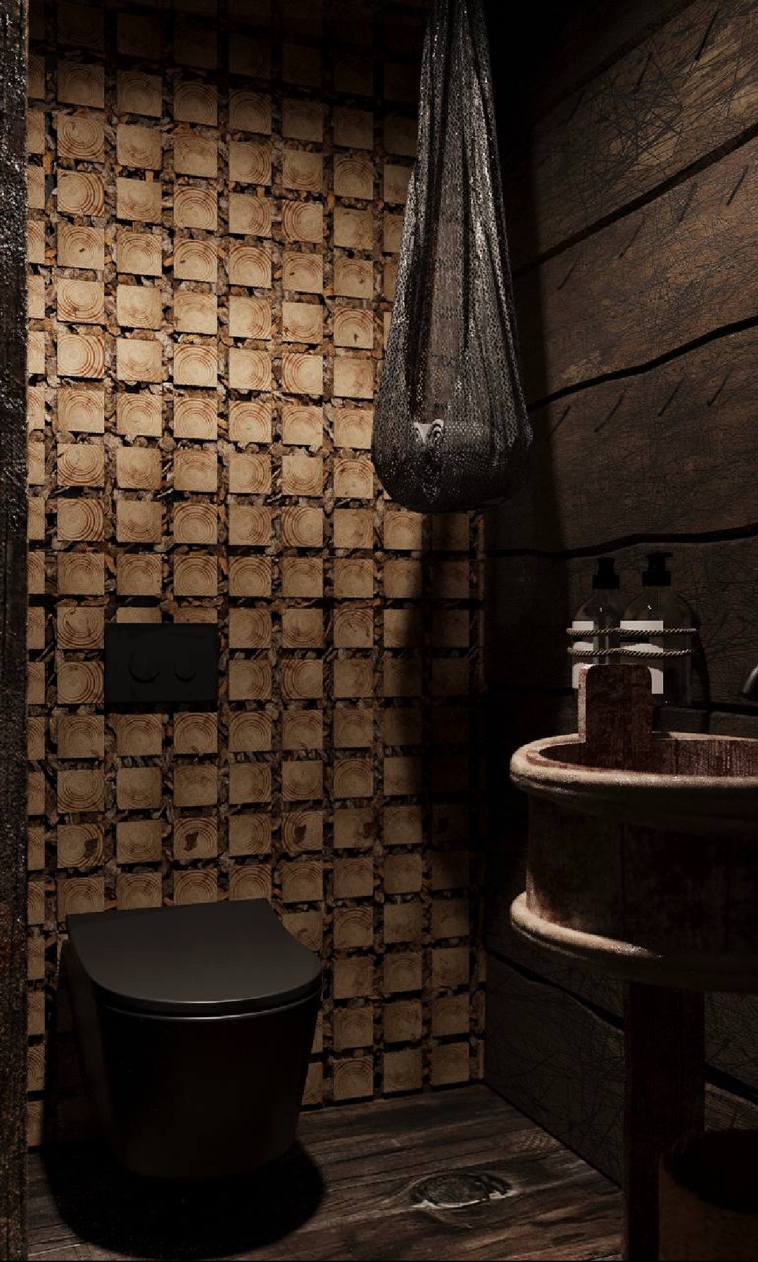 Текстура, интегрируемая в интерьер, отсылающая к кубикам, найденным при раскопках